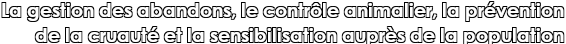 Notre mission principale est d’éliminer toute forme de cruauté envers les animaux et ainsi améliorer leur qualité de vie. Pour ce faire, nous abordons plusieurs volets